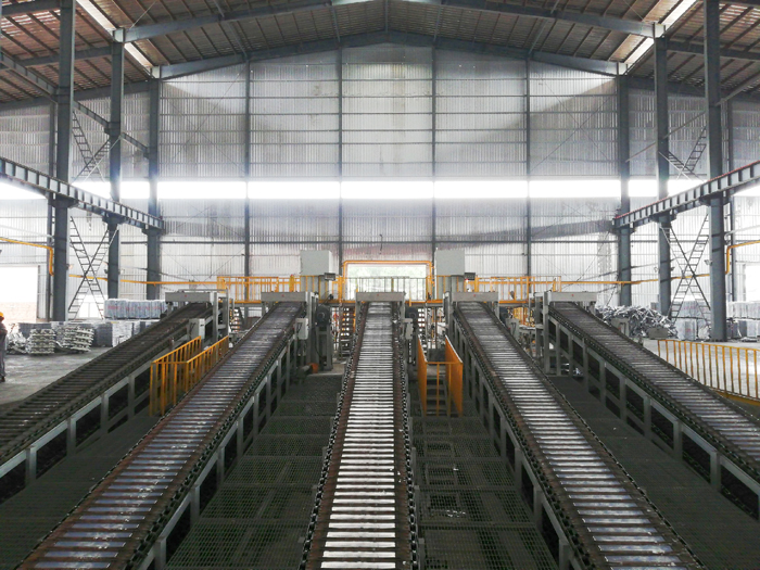 铝合金锭生产线属国内一流,熔炼炉自动控温、自动点火、自动测炉压,天然气能耗及铝的烧损属于行业先进水平。铸锭机是模底冷却,自动控制水流量,使铝锭结晶更好、冷却效果佳。如果冷却水泵出故障会自动切换到另一个水泵,确保正常生产,在行业内也属于先进设备。进口的机器人叠锭机有条不紊地工作着,减少了劳动力,降低了劳动强度。这个铝锭车间正在打造智能制造的示范车间。大家对铝锭设备的先进性赞不绝口。
