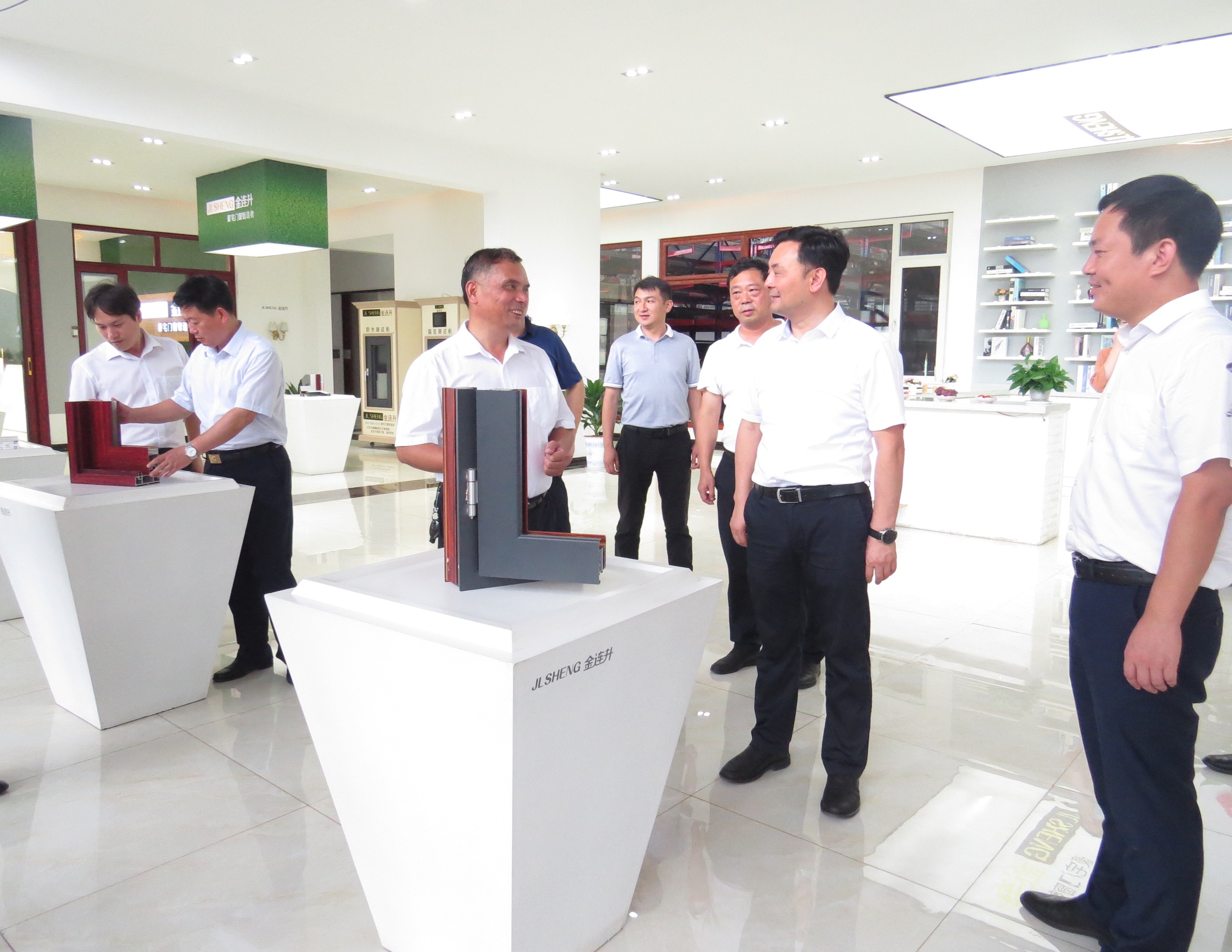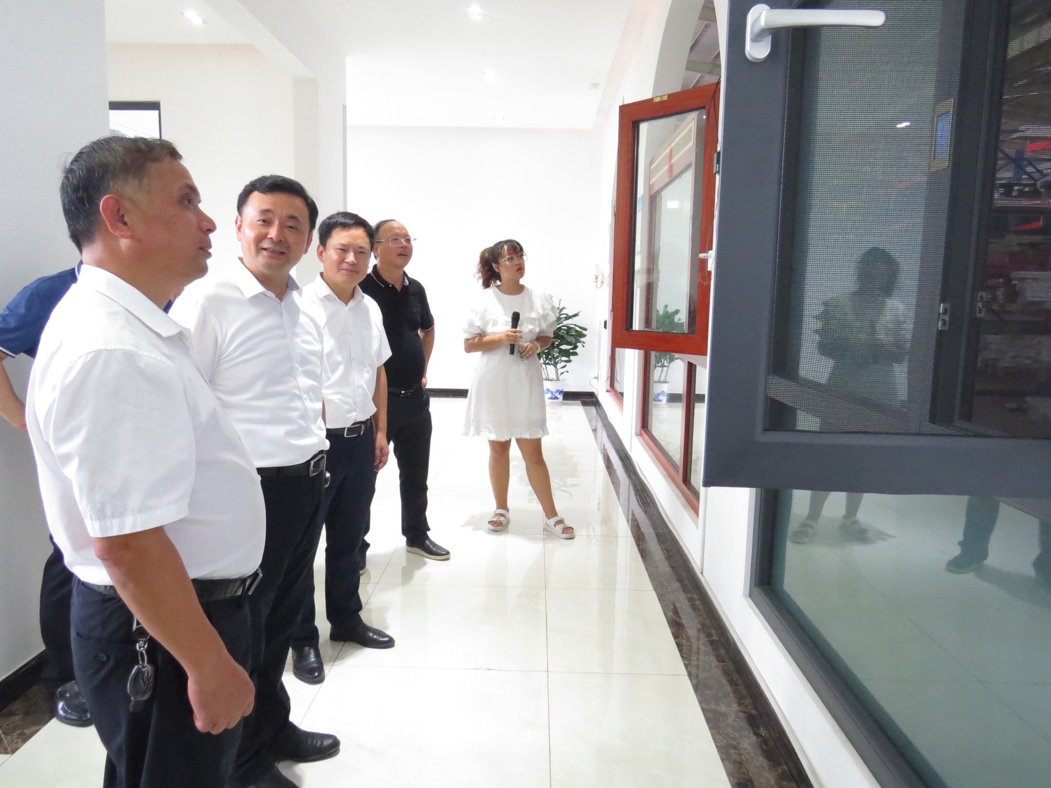 代市长陈敏带队参观了江西保太集团旗下子公司金连升智能门窗有限公司。在参观金连升智能门窗时,陈市长询问了智能门窗方面的专业知识,了解了公司的货物来源、销售情况、生产情况。